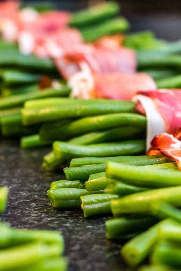 Green beans wrapped in bacon and covered in brown sugar butter sauce.submitted by: Reviewed by millions of home cooks. Though it may look complicated, this recipe is quite easy to prepare. The bundles make a wonderful addition to a holiday table or a fun presentation to liven up any dinner party menu. Divide green beans into 4 equal bundles.